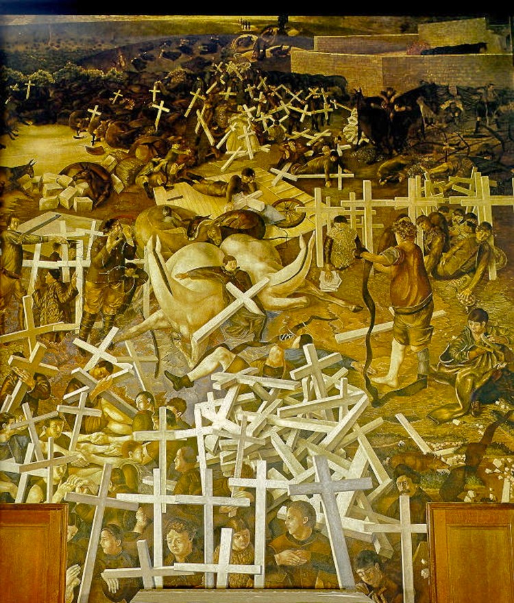 Matt Wall was preaching at the remembrance service this morning and he referred to another Spencer Resurrection painting, commissioned in the aftermath of the First World War, and drawing on Spencer’s own experience as a medical orderly in Macedonia. It is called ‘The resurrection of the Soldiers’.
