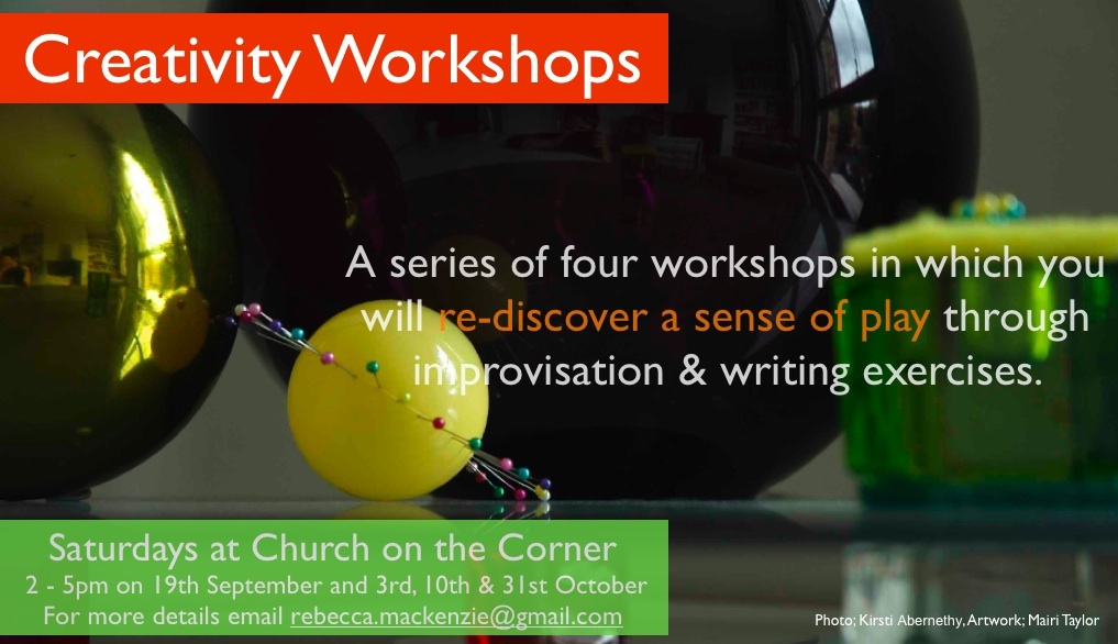In this Autumn’s series of Saturday workshops, we will be exploring ‘creativity’. You will re-discover a sense of play through simple improvisation and writing exercises. And in the process have a lot of laughs and gain a fresh perspective on your own creative journey.