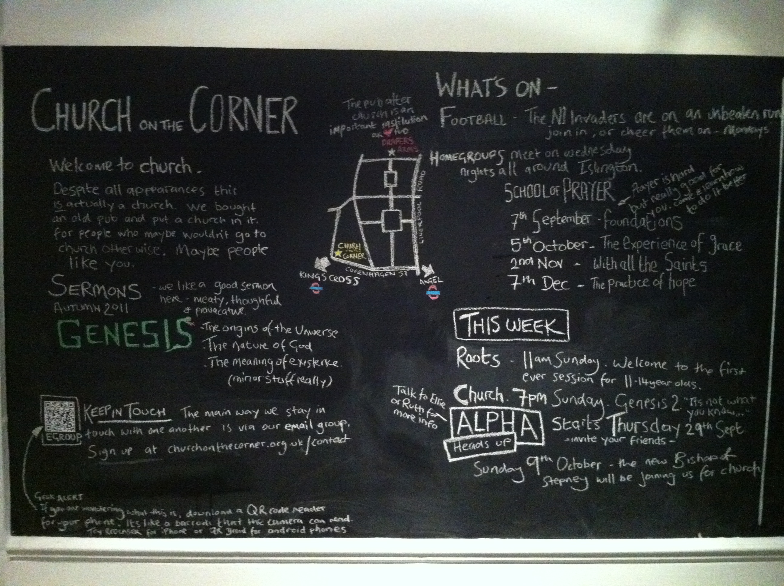 LOVE this chalk board. And huge respect to whoever drew the QR code.