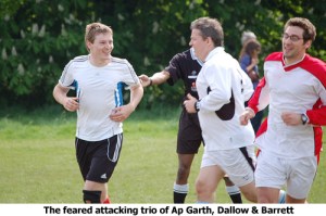 Invaders stamped their authority on the match early on with a fearsome strike from Ap Garth that put supporters in mind of, well, a young Ap Garth. From there on in N1 dominated the match and Dallow wrapped up the points with a coolly taken penalty in the dying minutes. The score was 2-0 to Invaders but the result was much more than that. This was the fillip that Invaders needed and now the players and the fans started to think maybe, just maybe.