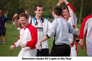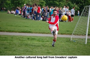 During the shoot-out the advantage switched from one side and then to the other and it looked like nothing would separate these two teams. 5 penalties in and still it was honours even. But on the sixth penalty Blackmore booked his place in Invaders’ folklore and his team’s place in the final. He showed his agility by saving Ambassador’s 6th spot-kick and then calmly slotted home from 7 yards to ensure the fans would be singing his name as they made their way to the Wembley of Regent’s Park – Pitch 2.